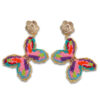 Aretes Mariposas tejidos a mano en delicas de miyuki (cristal japonés) y topos en bronce con baño en oro de 24 kilates. Todos nuestros tejidos son elaborados a mano en Colombia por madres cabeza de familia. Cada par de aretes tejidos tiene horas de mucho trabajo y amor.