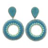 Aretes Circulo Flor ICQ Miyuki, tejidos a mano en delicas de miyuki (cristal japonés). Todos nuestros tejidos son elaborados a mano en Colombia por madres cabeza de familia. Cada par de aretes tejidos tiene horas de mucho trabajo y amor. El color del tejido puede variar levemente respecto a la foto.