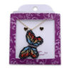 Cadena en acero inoxidable con baño en oro, con dije mariposa tejido a mano en miyuki (cristal japonés). Viene con topos en acero con baño en oro.