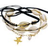Set x 3 Tobilleras ajustables con nudo corredizo, para utilizar individuales o en conjunto. Elaboradas en conchitas naturales, macramé y cadena en oro golfy.